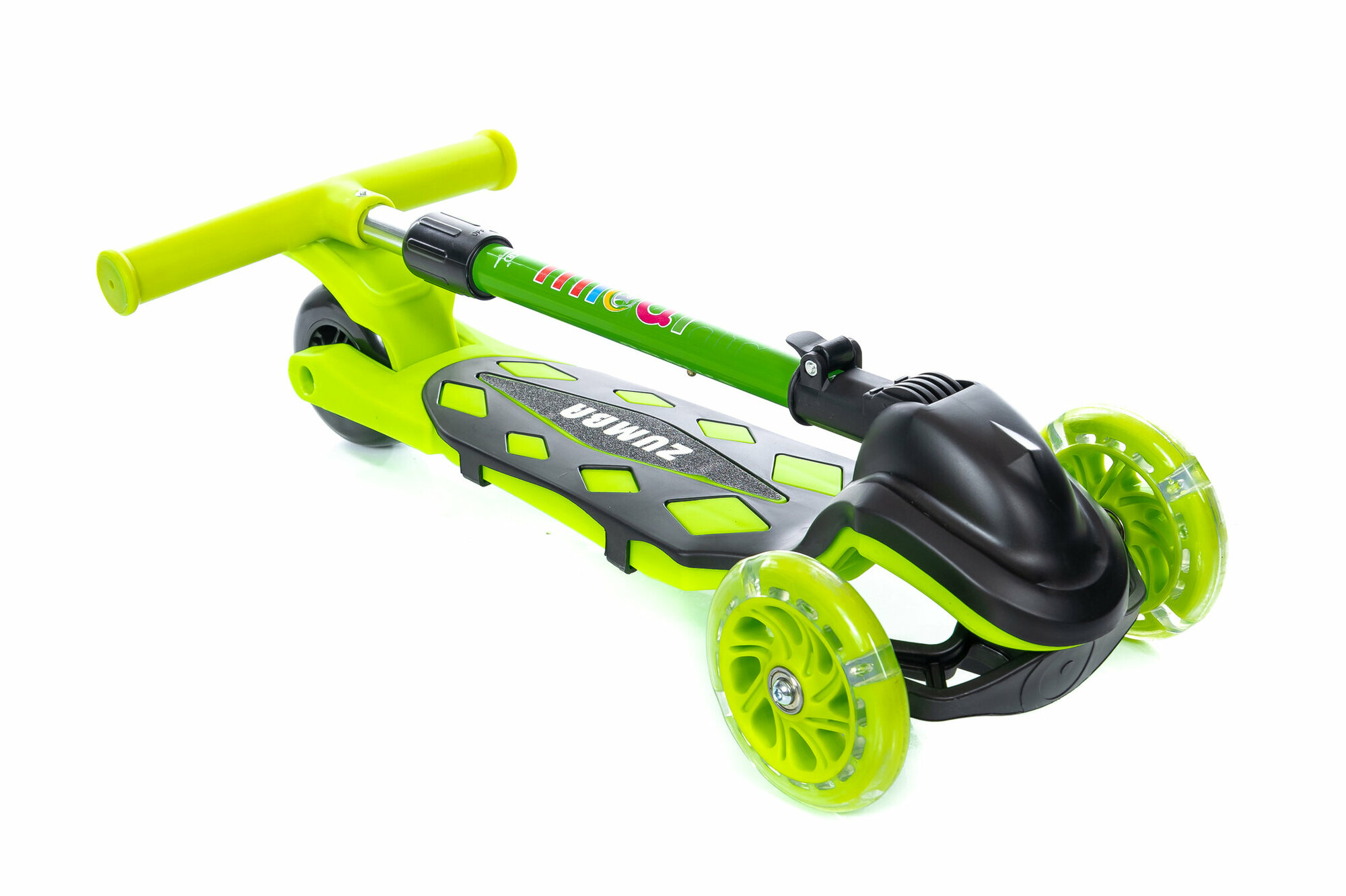 Самокат трехколесный со светящимися колесами Micar Zumba 2022 чёрный, зеленый