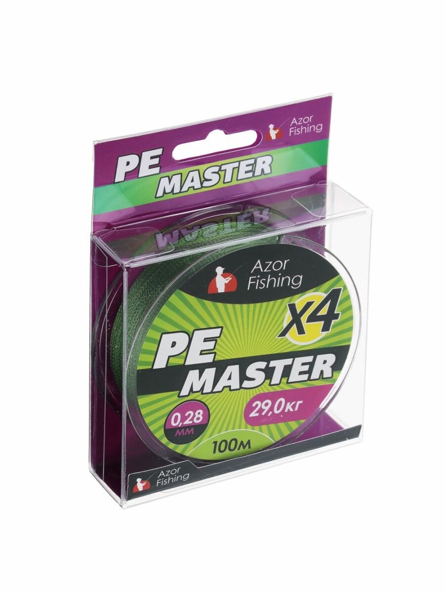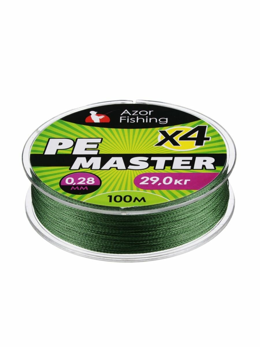 AZOR FISHING Леска плетеная, PE Мастер, 100м, 0,28мм, 29,0кг, зеленая