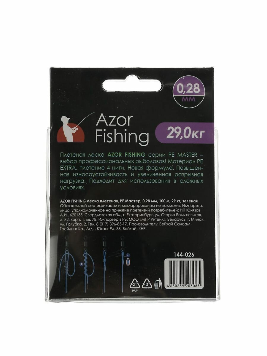 Купить AZOR FISHING Леска плетеная, PE Мастер, 100м, 0,28мм, 29,0кг