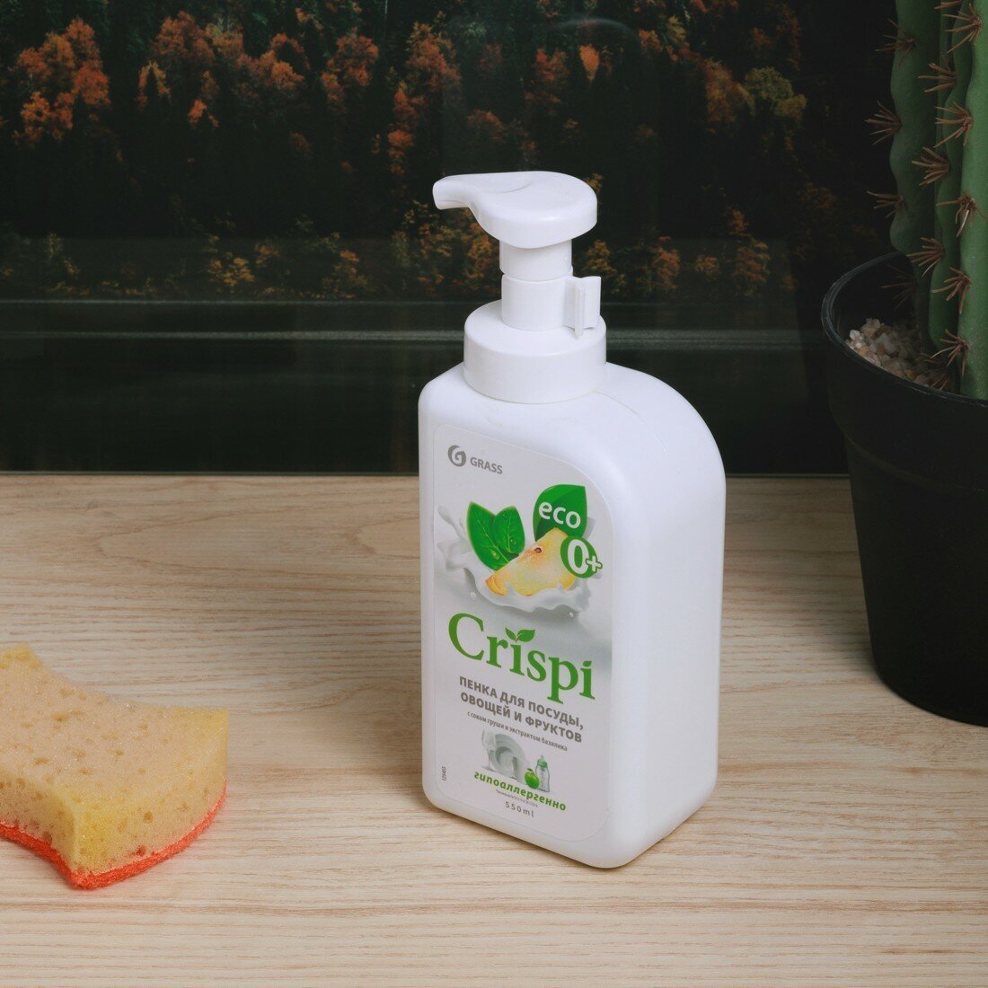 Пенка для мытья посуды Grass CRISPI с соком груши и экстрактом базилика, 550 мл