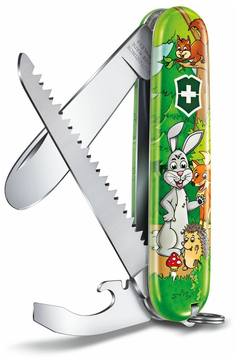 Складной нож Victorinox My First Victorinox Rabbit Edition, функций: 9, 84мм, зеленый / рисунок, коробка картонная [0.2373.e2]