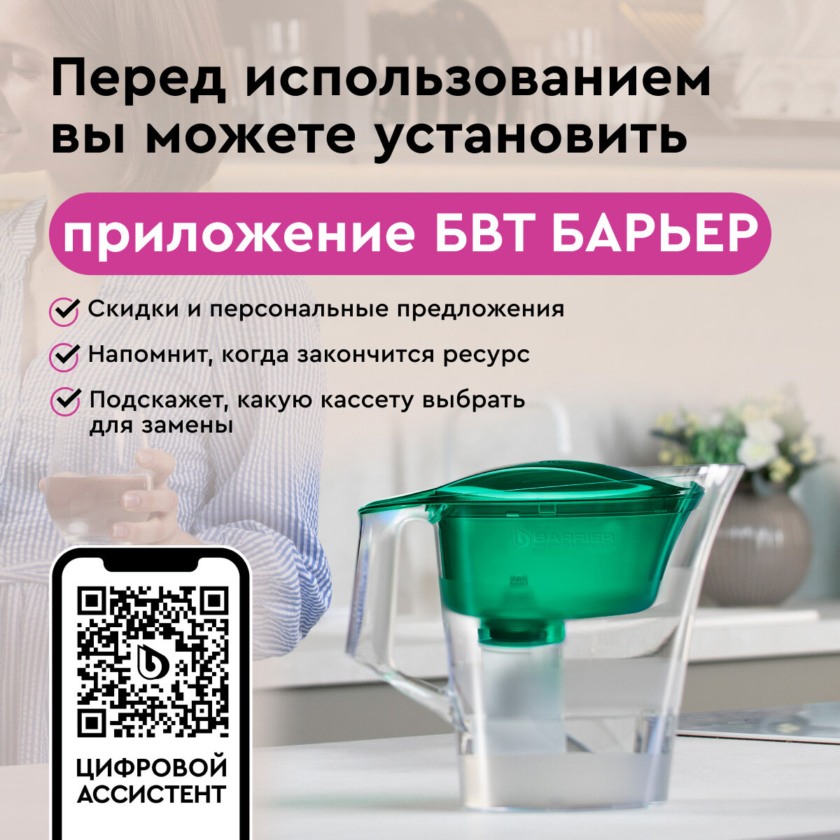 Кувшин-фильтр для очистки воды барьер «Твист», 4 л, со сменной кассетой, зеленый