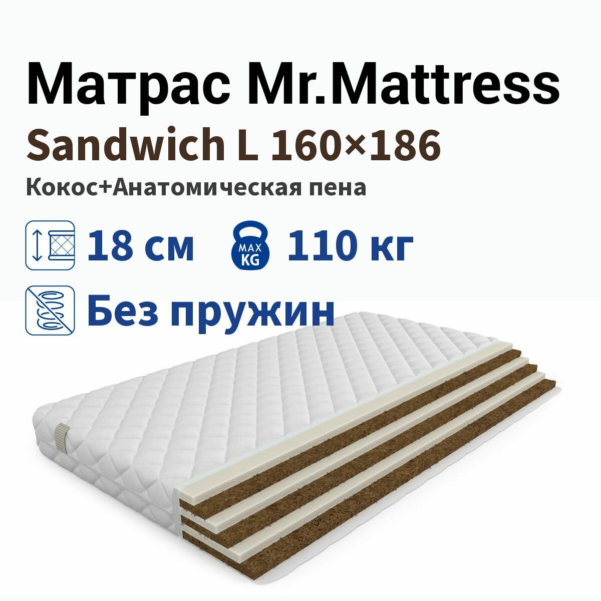 Матрас Mr.Mattress Sandwich L, Размер 110х186 см