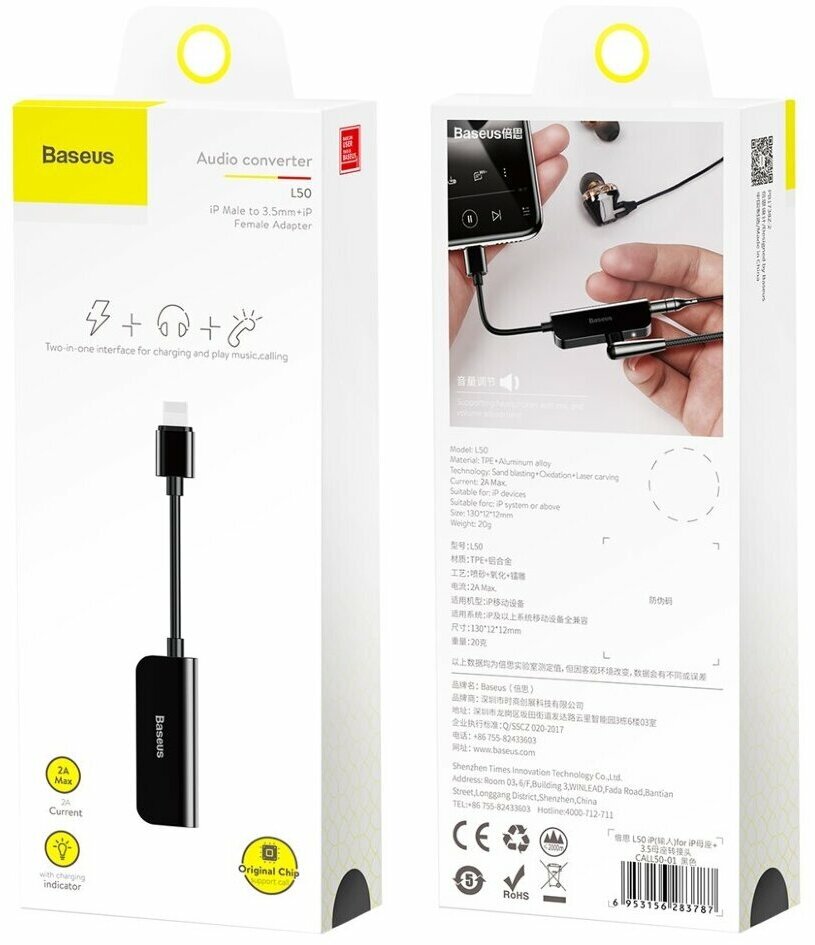 Адаптер CALL50-01 Baseus iP Male to iP & 3.5mm Female Adapter L50 Черный