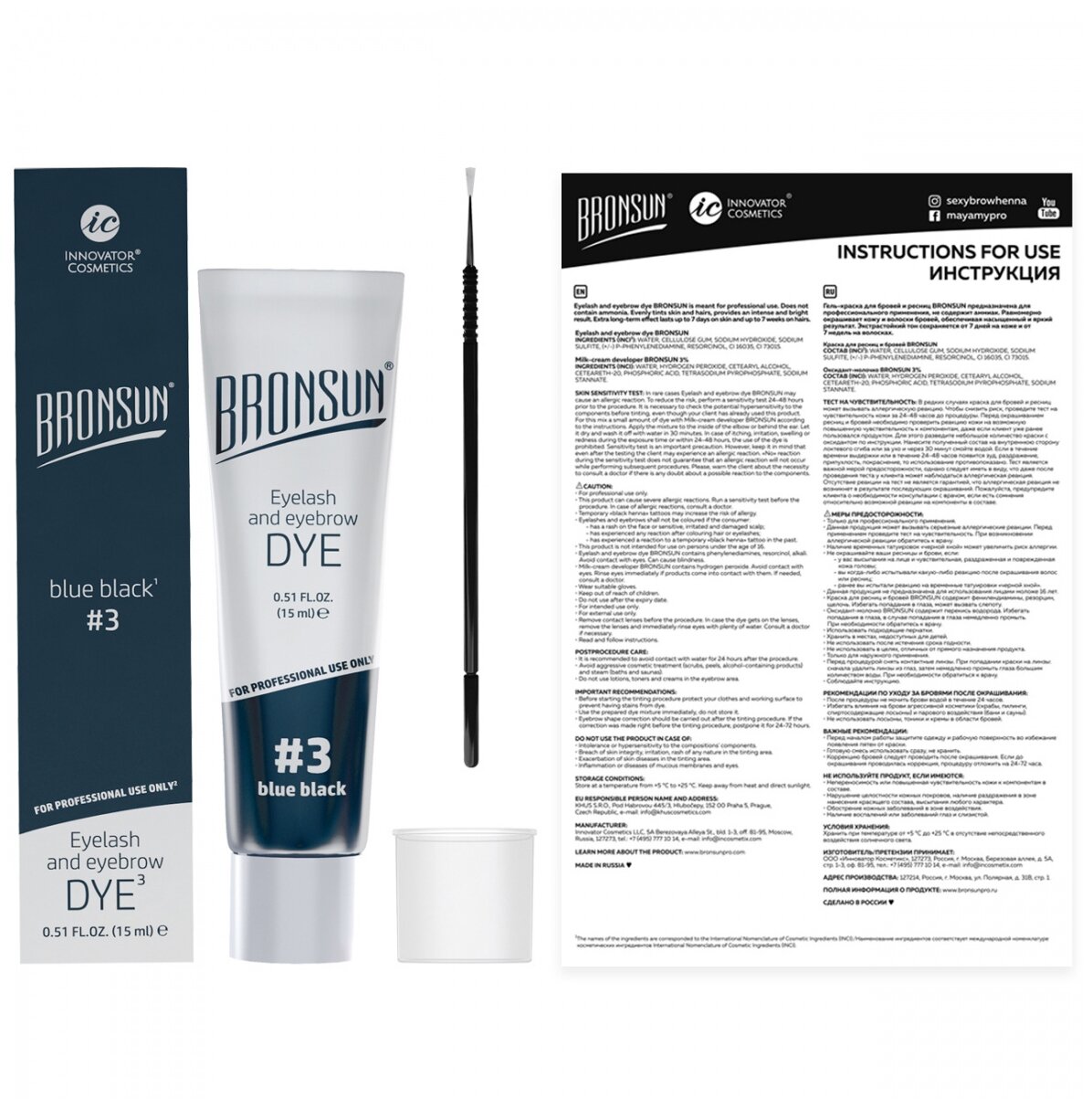 Краска для бровей и ресниц, иссиня-черный цвет #3, Innovator Cosmetics BRONSUN blue black, 15 мл (Бронсан)