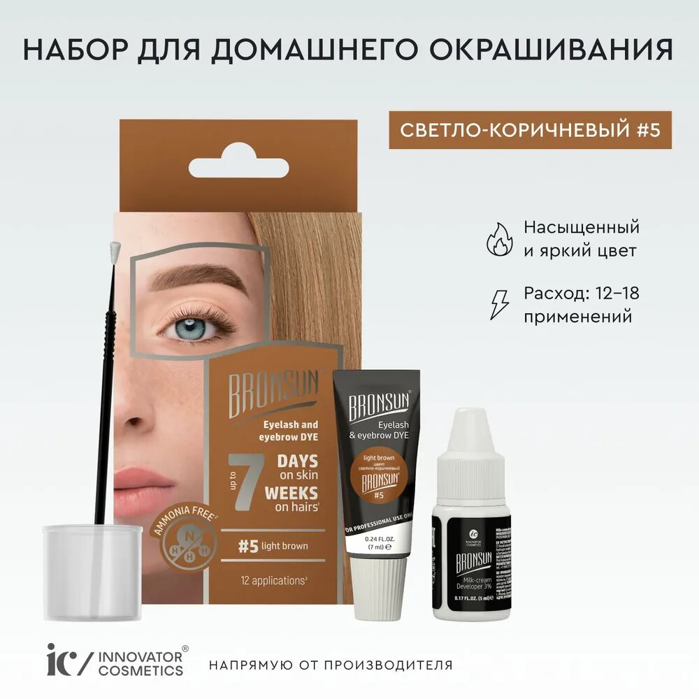 Innovator Cosmetics, Bronsun, Набор для домашнего окрашивания №5, светло-коричневый (1/12шт)