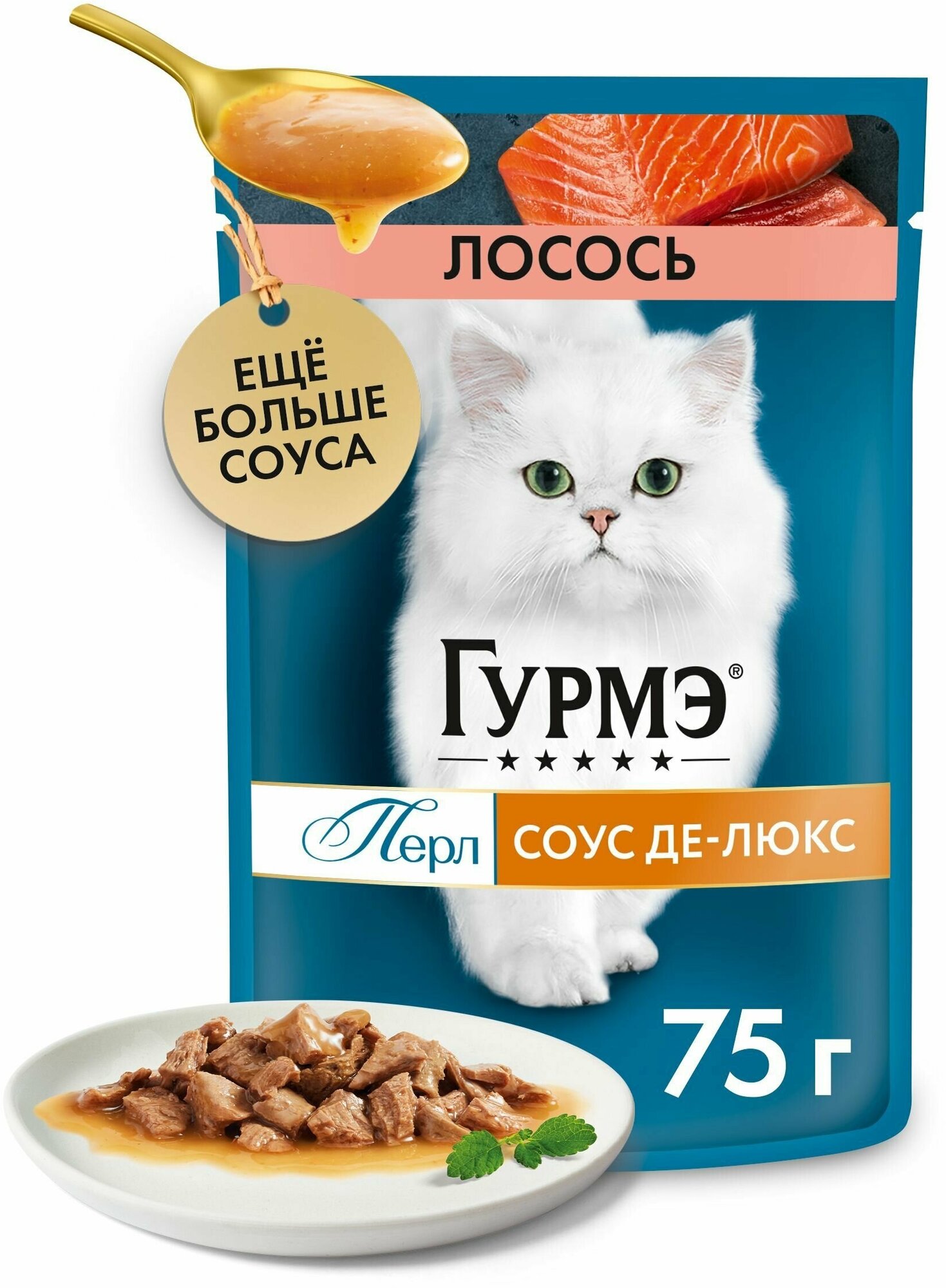 Гурмэ перл соус де-люкс для взрослых кошек с лососем в соусе пауч 75 гр NEW 75 гр х 10 шт