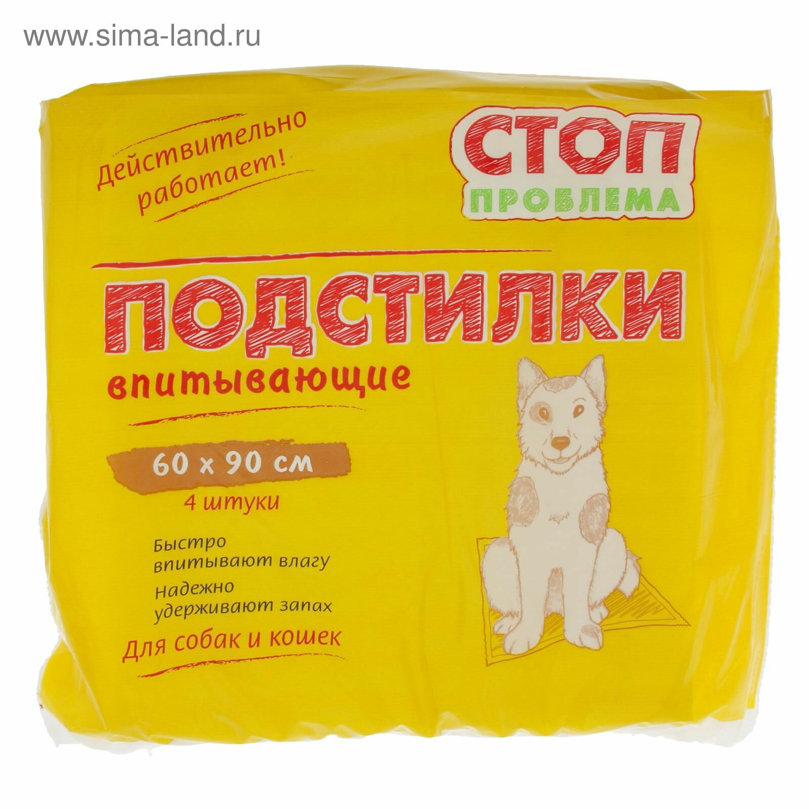 Пеленки для собак впитывающие стоп проблема S206 90х60 см 90 см 60 см 4 шт. желтый