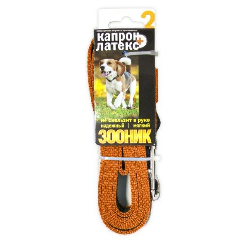 Поводок зооник капроновый с двойной латексной нитью оранжевый для собак (2 м/20 мм)