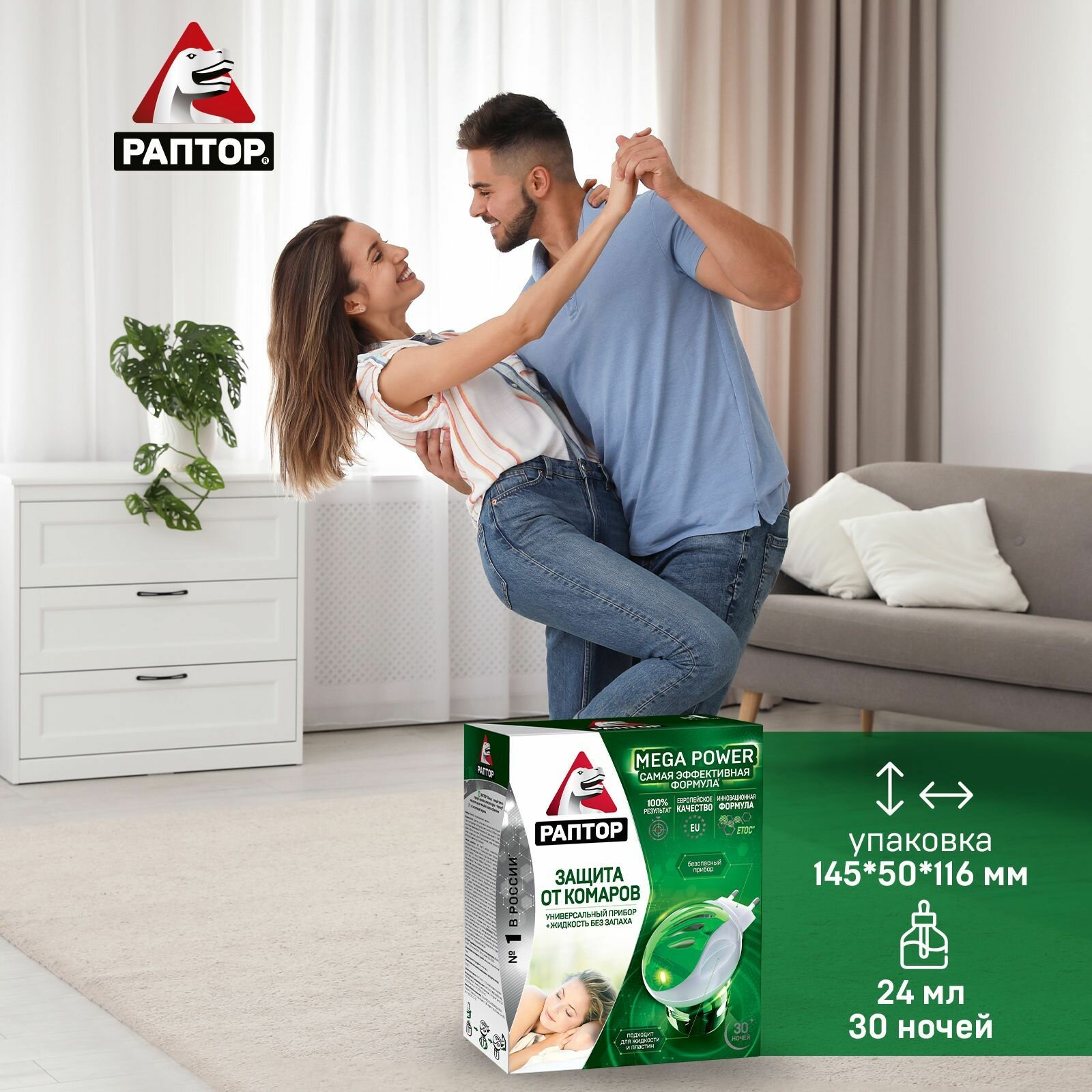 Комплект от комаров повышенной эффективности Раптор Mega Power, фумигатор и жидкость от комаров, 30 ночей