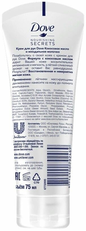 Dove крем для рук кокосовое масло И миндальное молочко 75 мл