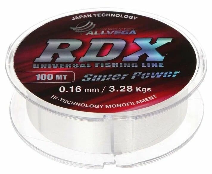 Купить Леска монофильная ALLVEGA "RDX Universal" 100м 0,16мм (3,28кг) прозрачная