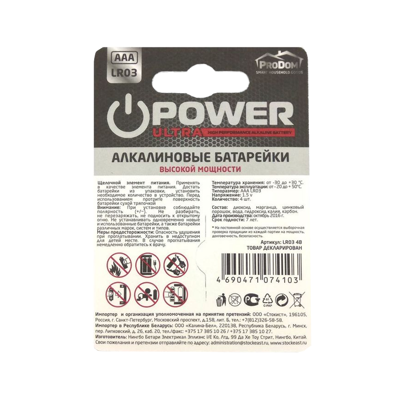 Батарейка ProDom Power Ultra AAA/LR03, в упаковке: 4 шт. интересное: