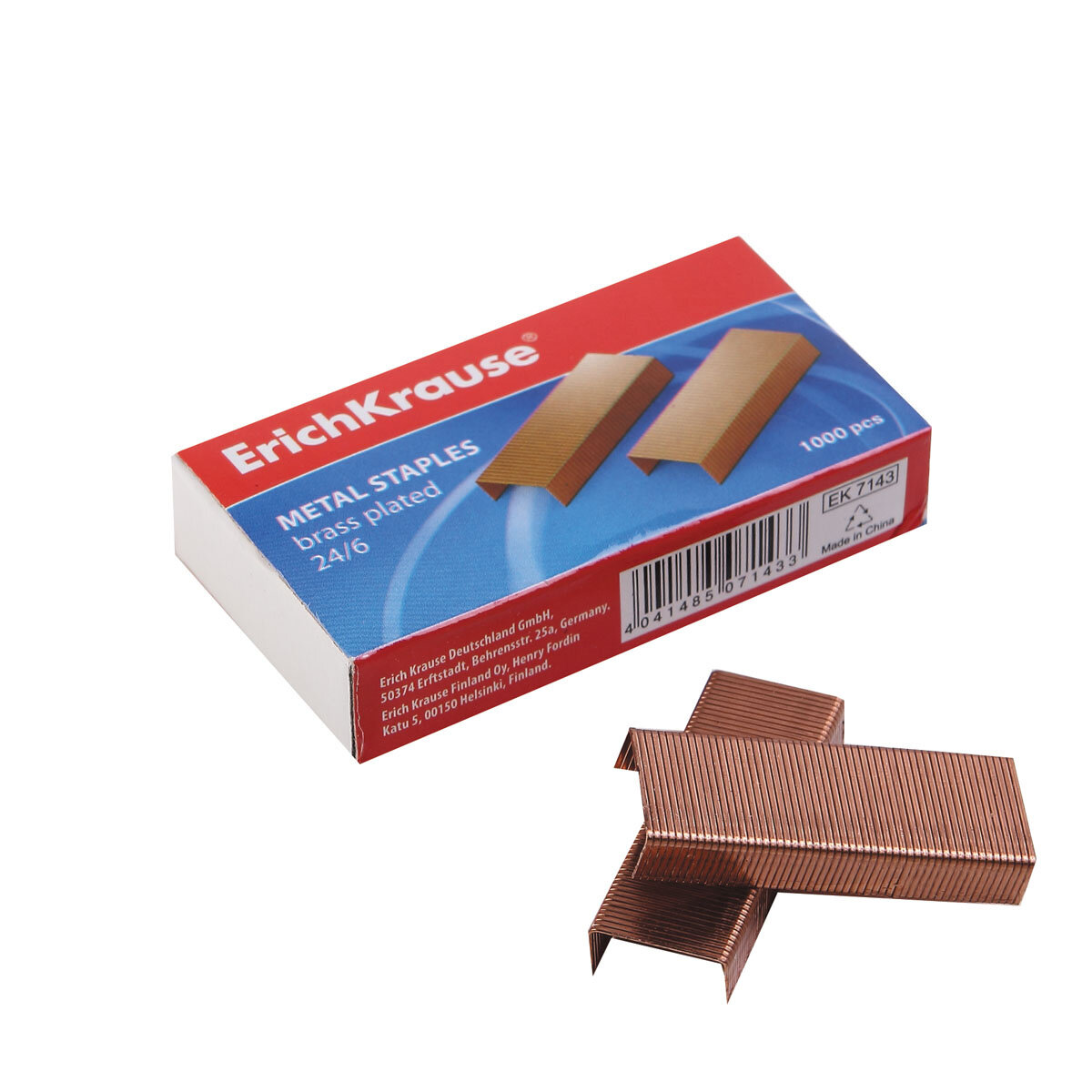 Скобы для степлеров Erich Krause, №24/6, медное покрытие, 1000шт. (7143)