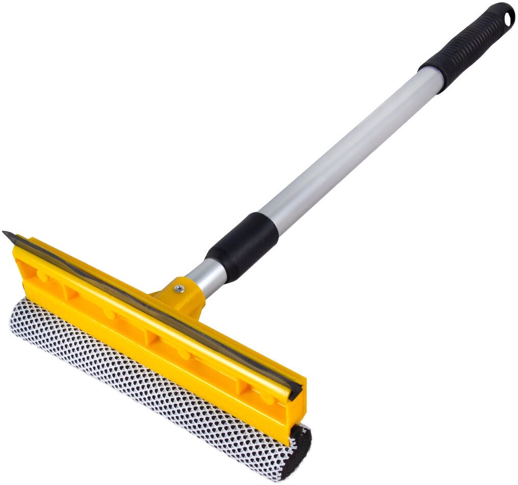 Щетка для мытья окон Hitt, резиновый скребок и губка, телескопическая ручка 96 см