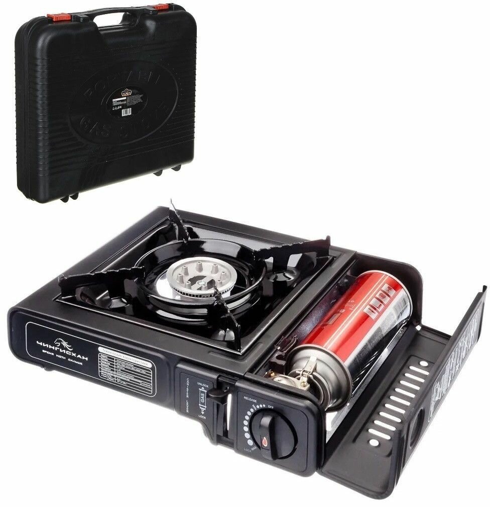 Чингисхан Плитка газовая к бал. с цанговым захватом портативная с переходник, в кейсе 333-138