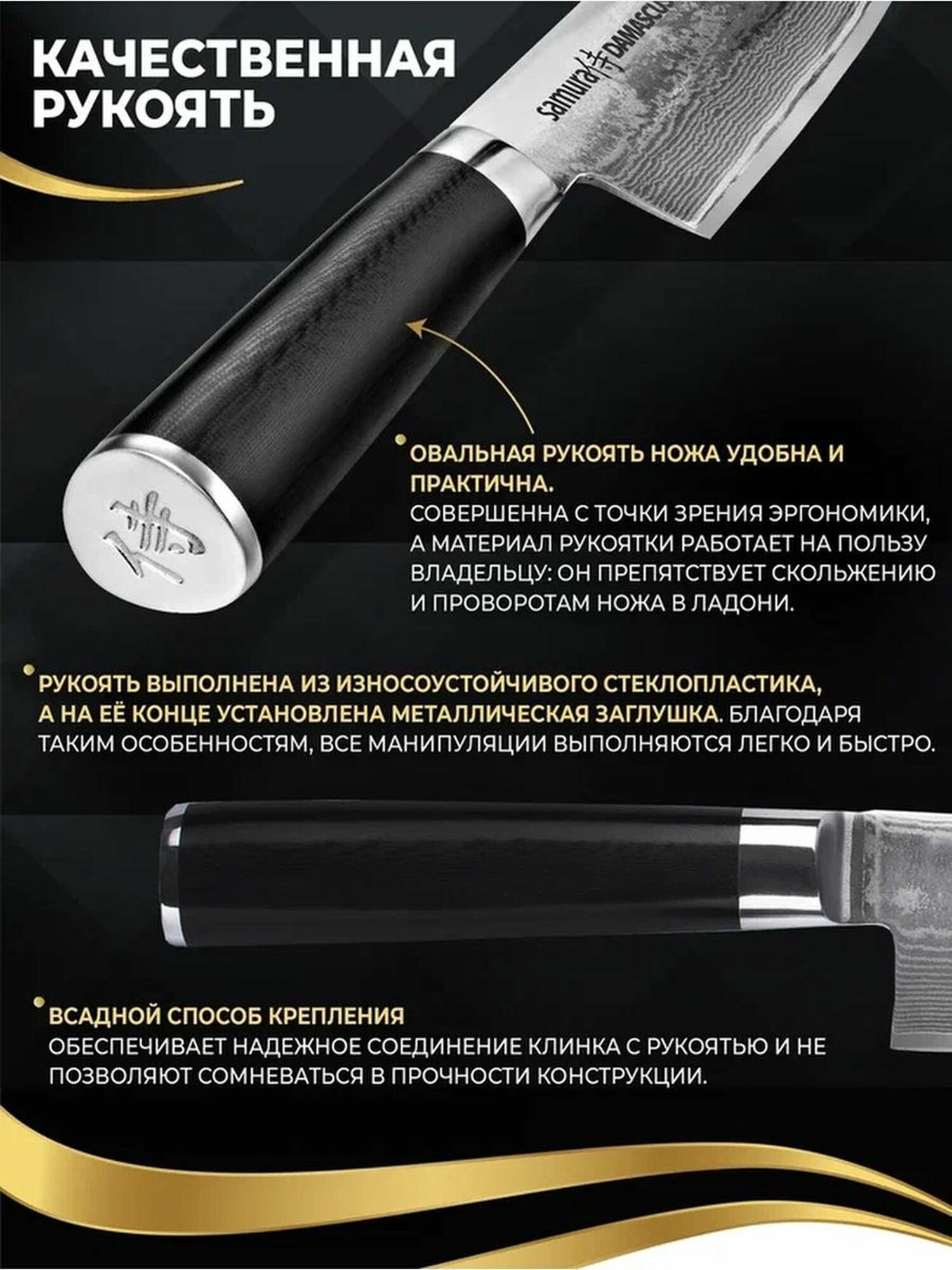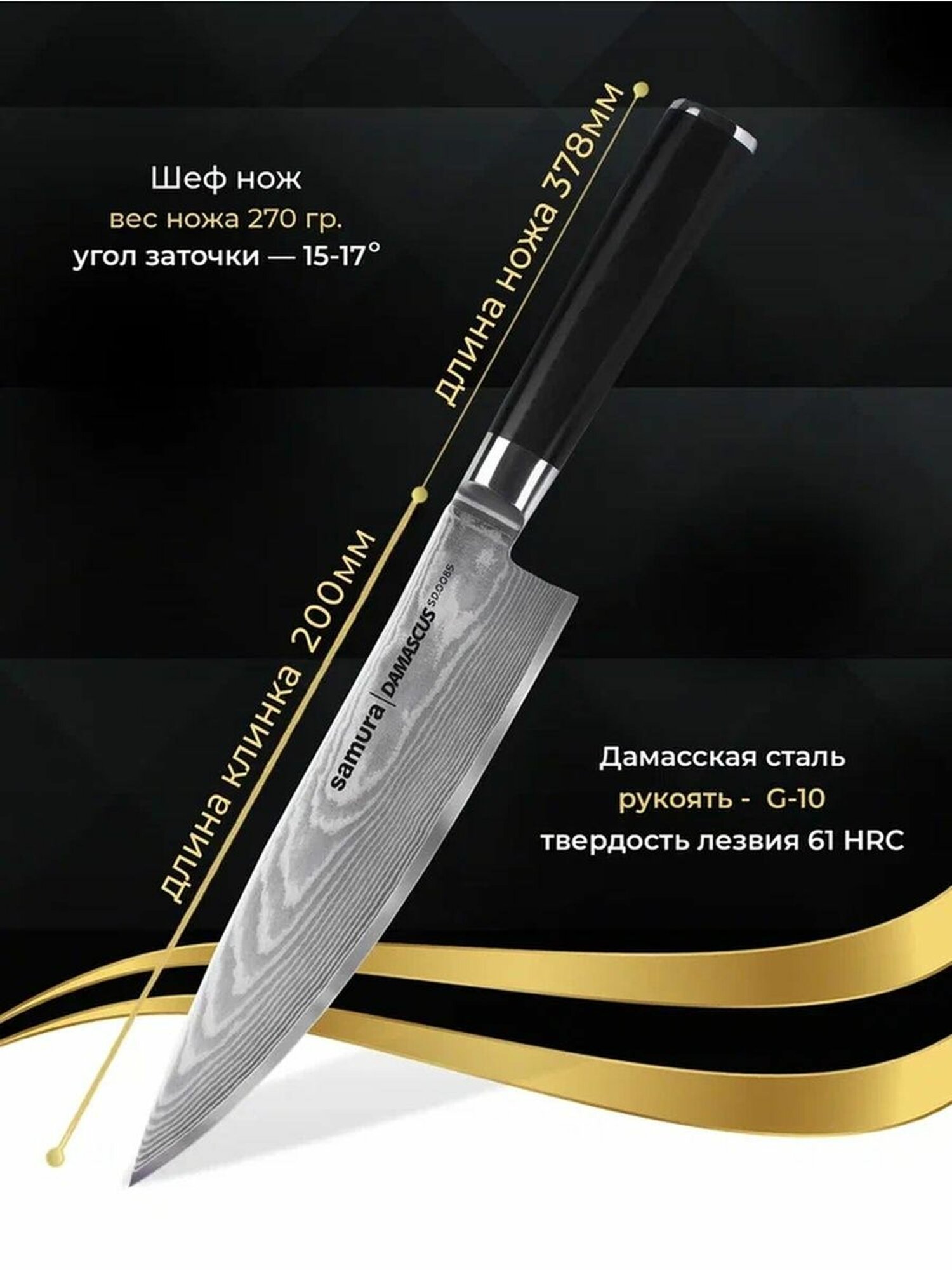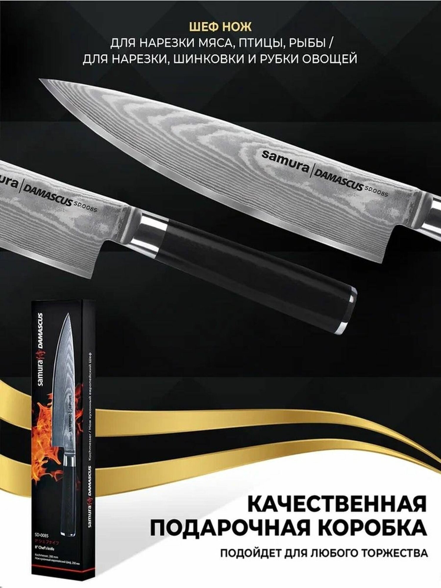 Шеф нож для нарезки мяса, рыбы, овощей и фруктов / кухонный нож дамасский / поварской нож для кухни Samura Damascus 200мм SD-0085 интересное: