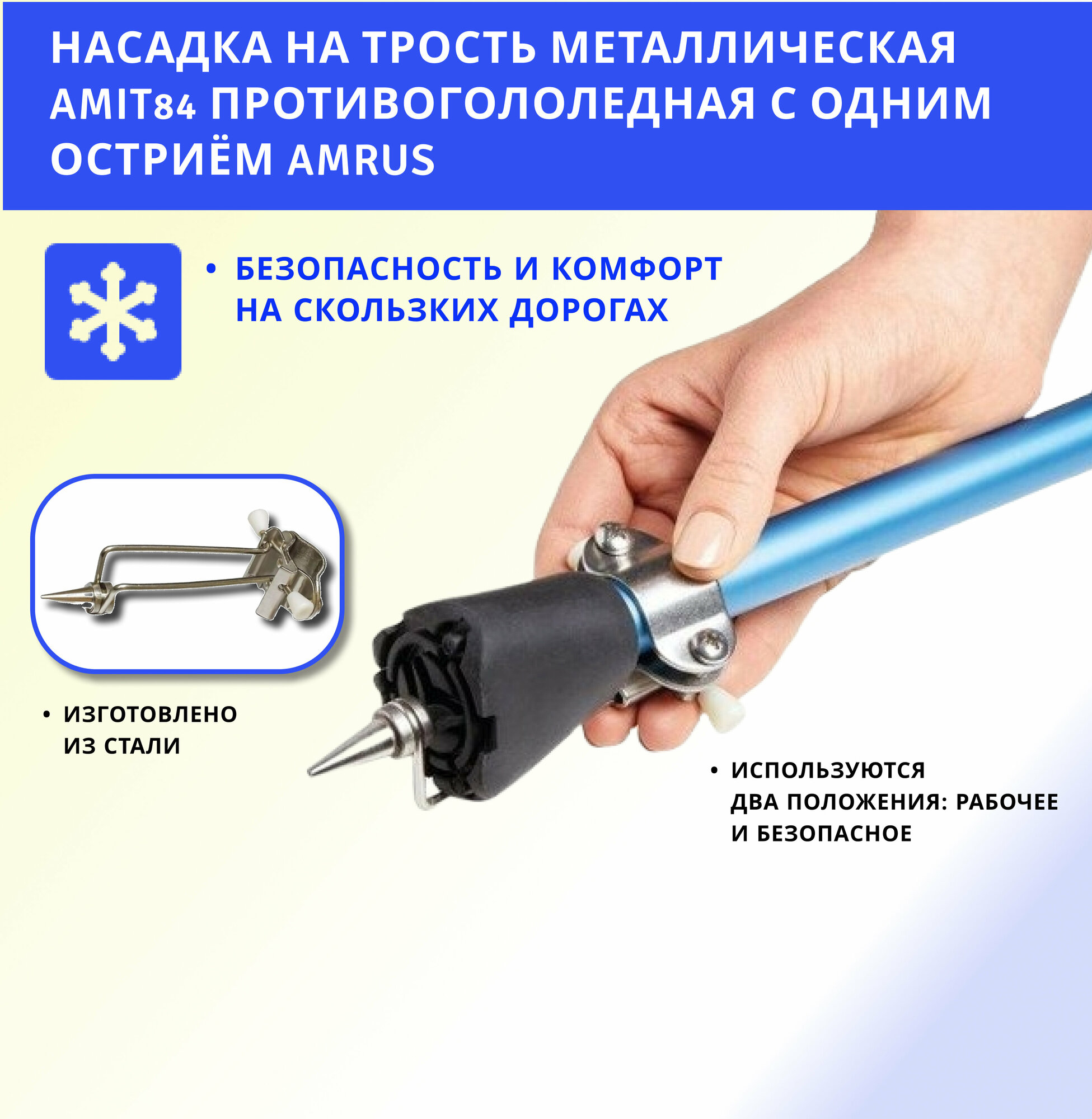 Amrus AMIТ84 / Амрос - противогололедная насадка на трость, с одним острием, металлическая