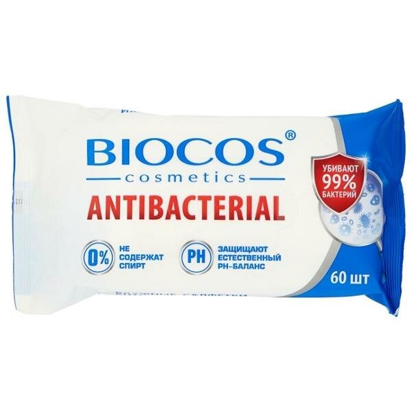 BioCos Влажные салфетки антибактериальные, 60 шт.