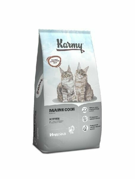 Корм Karmy Main Coon Kitten для котят породы мейн-кун, беременных и кормящих кошек, с индейкой, 1.5 кг