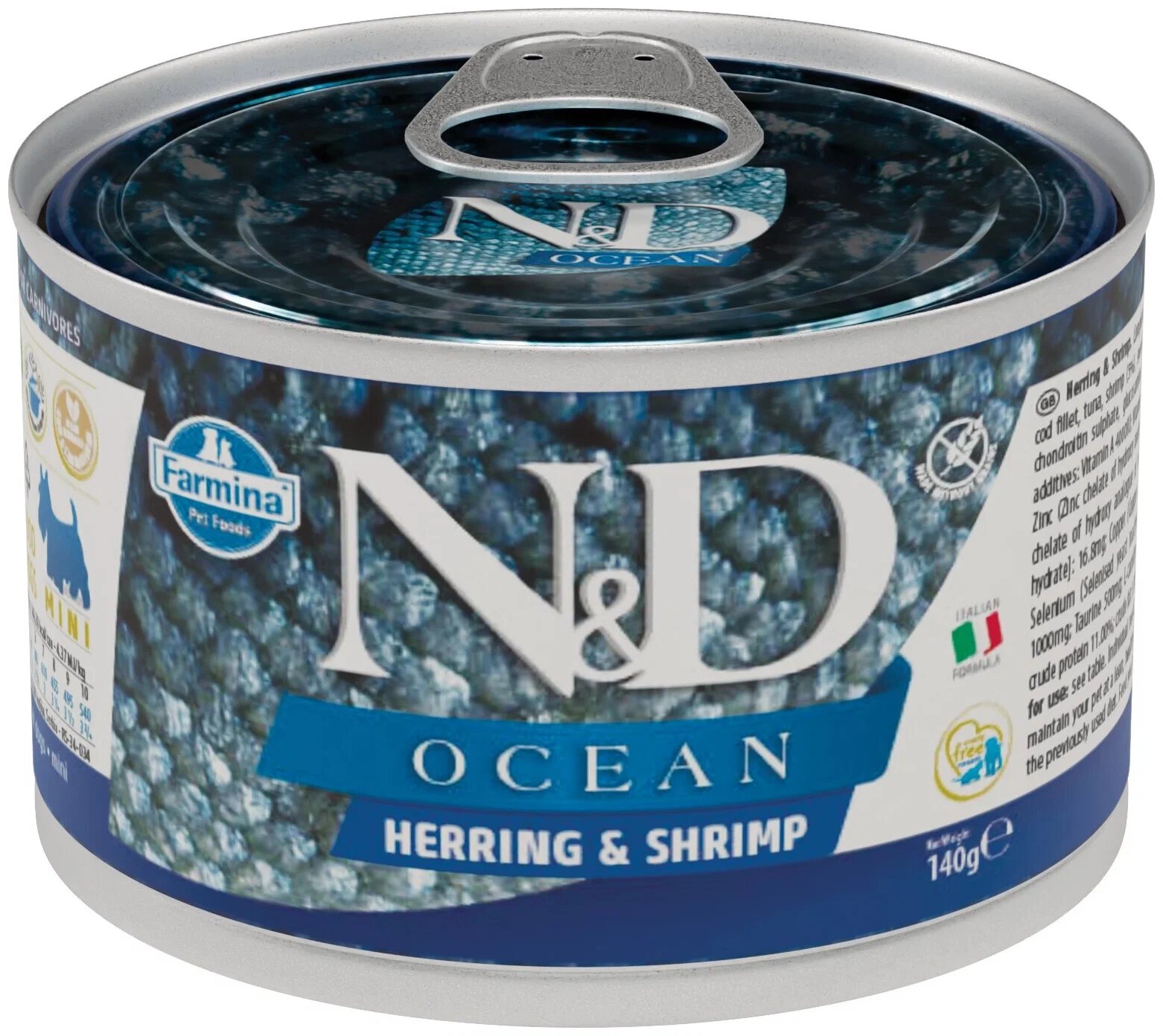 Корм консервированный Farmina N&D Ocean для собак мелких пород с сельдью и креветками, 140 г, 1 шт.