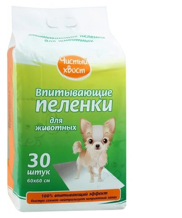 Чистый хвост Пеленки впитывающие для животных, 60 х 60 см (30 шт)