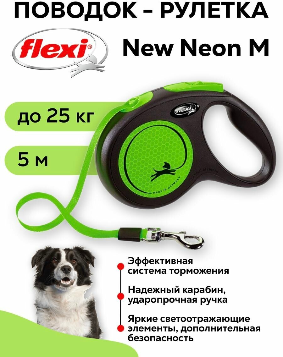 flexi рулетка Neon M (до 25 кг) лента 5 м .
