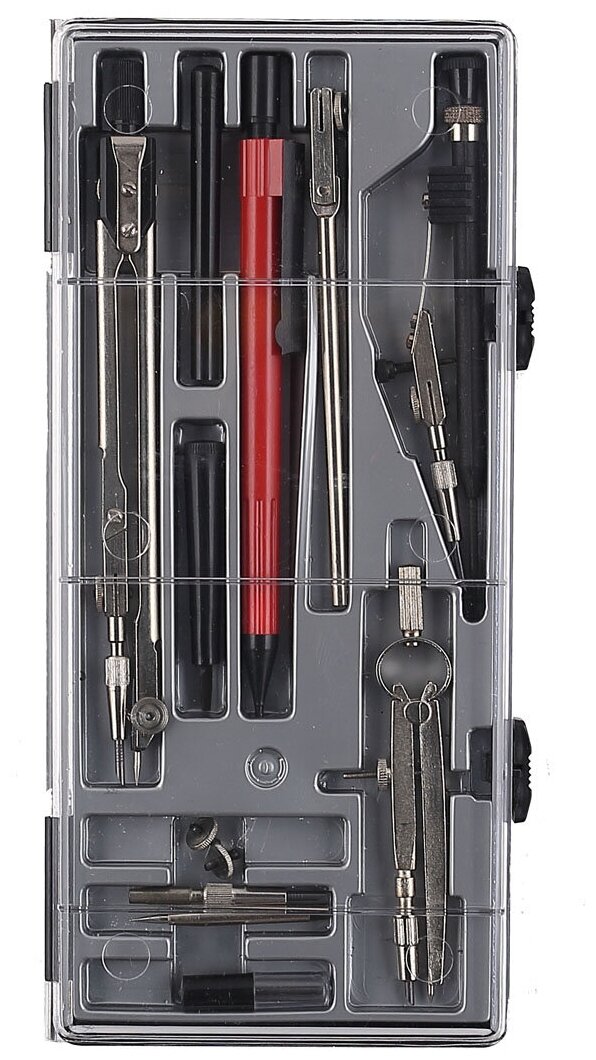 Купить Готовальня циркуль 155мм для черчения набор из 12 предметов