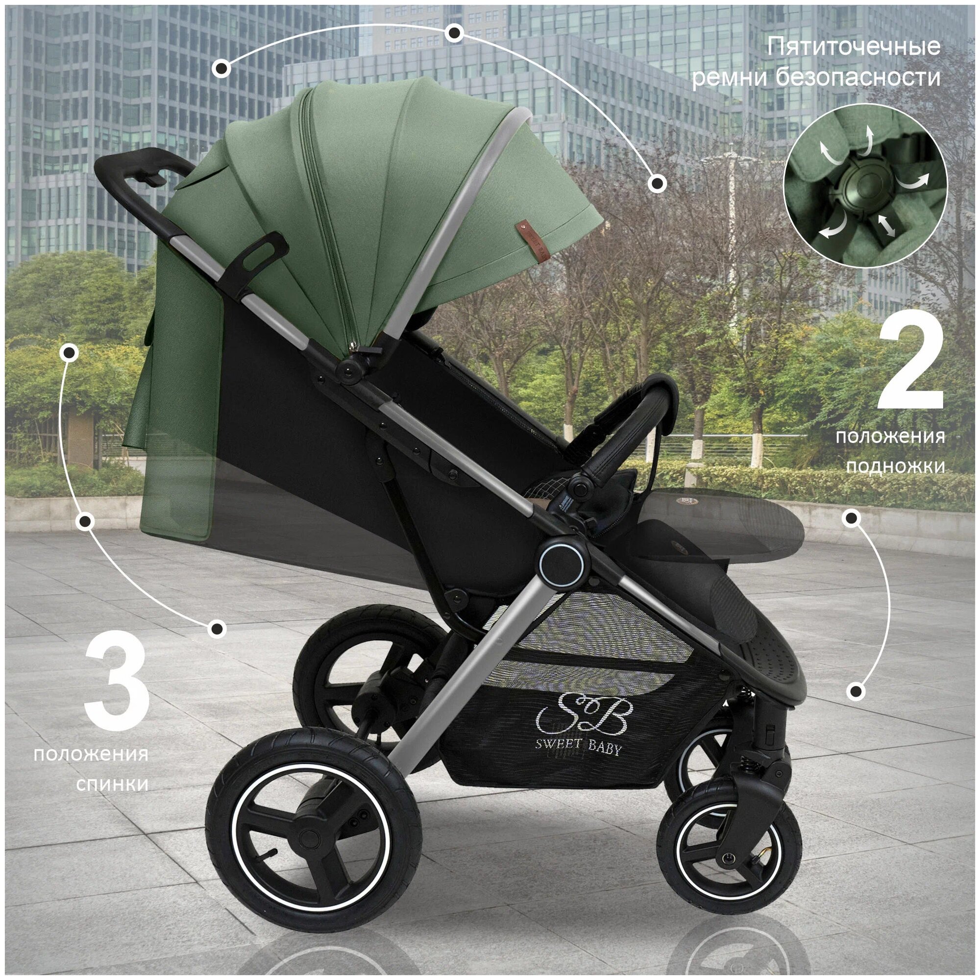 СохранитьПрогулочная коляска Sweet Baby Suburban Compatto Air, Green / Silver интересное: