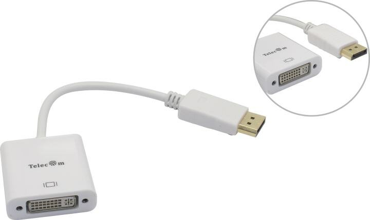 Адаптер Telecom DisplayPort - DVI-F (TA557) 0.2 м, белый, 0.2 м