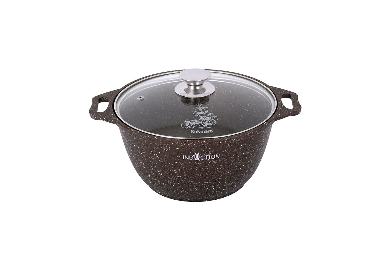 Кастрюля Kukmara "Marble Induction" 3 л с антипригарным покрытием, со стеклянной крышкой, индукционная