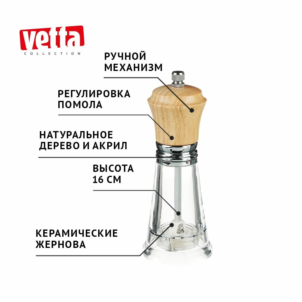 Мельница для специй акрил+дерево 16см Vetta интересное: