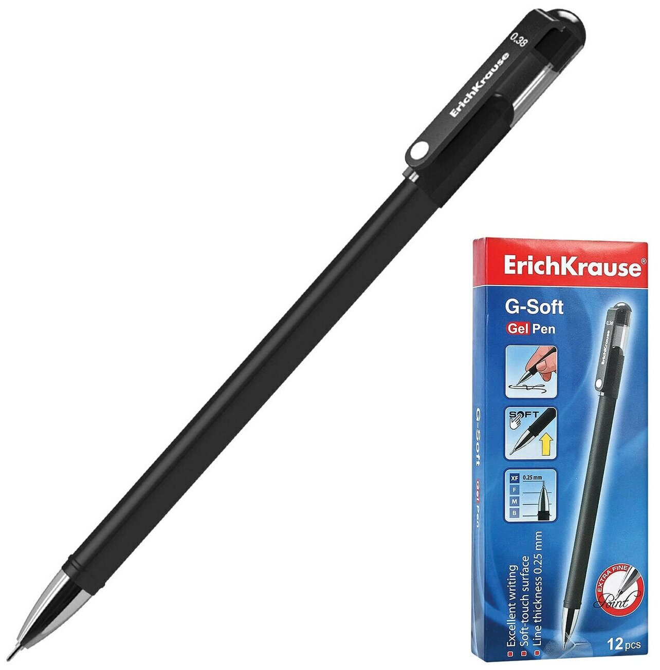Ручка гелевая ErichKrause G-Soft, чернила чёрные, узел 0.38 мм, 12 шт.
