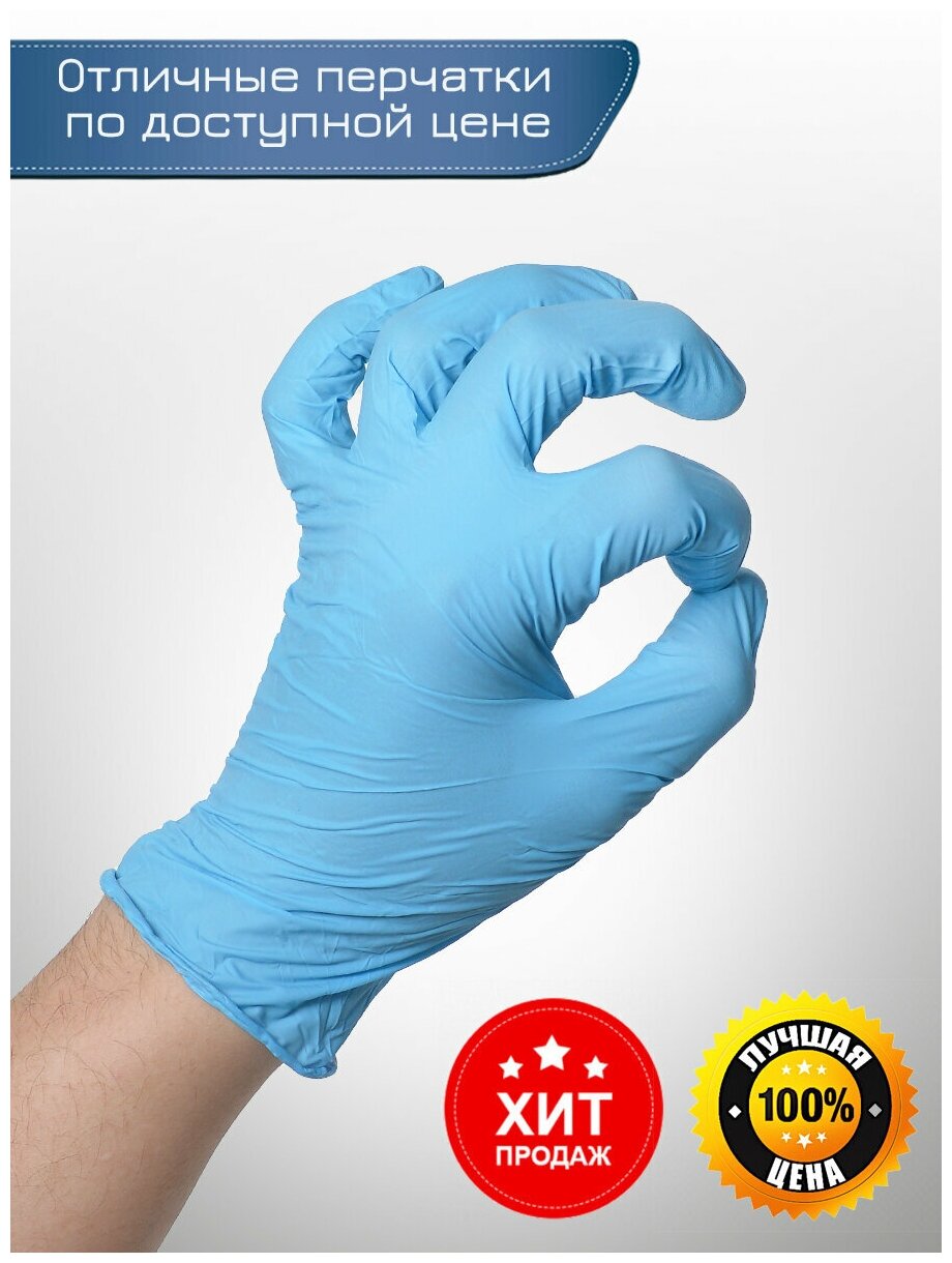 Benovy Перчатки одноразовые нестерильные нитриловые текстурированные на пальцах голубого цвета, 50пар, размер L