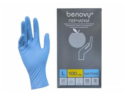 "Перчатки нитриловые Benovy (голубые), L, 100 шт/50 пар."