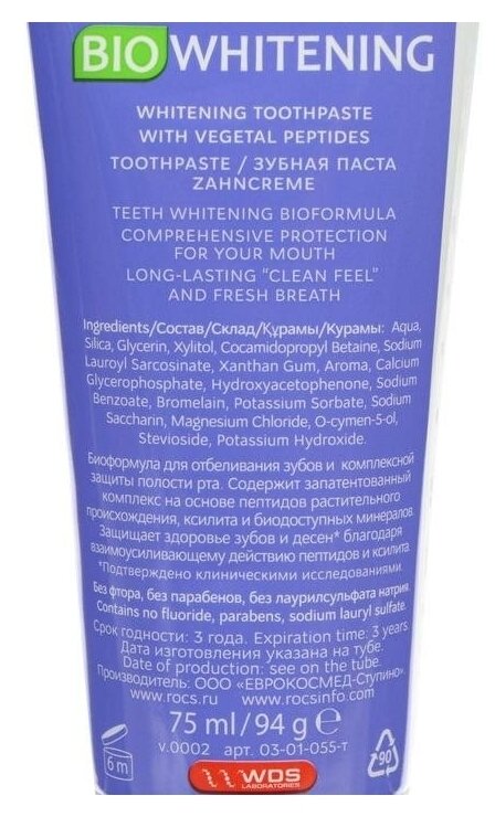 R.O.C.S З/п BIOWHITENING Безопасное отбеливание, 94 гр
