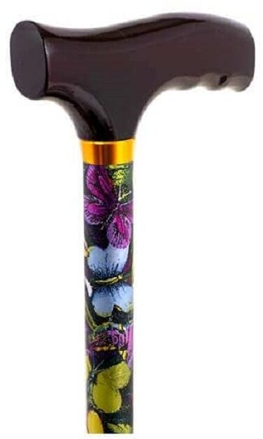 Трость прогулочная с Т-образной деревянной ручкой 10090 бабочки