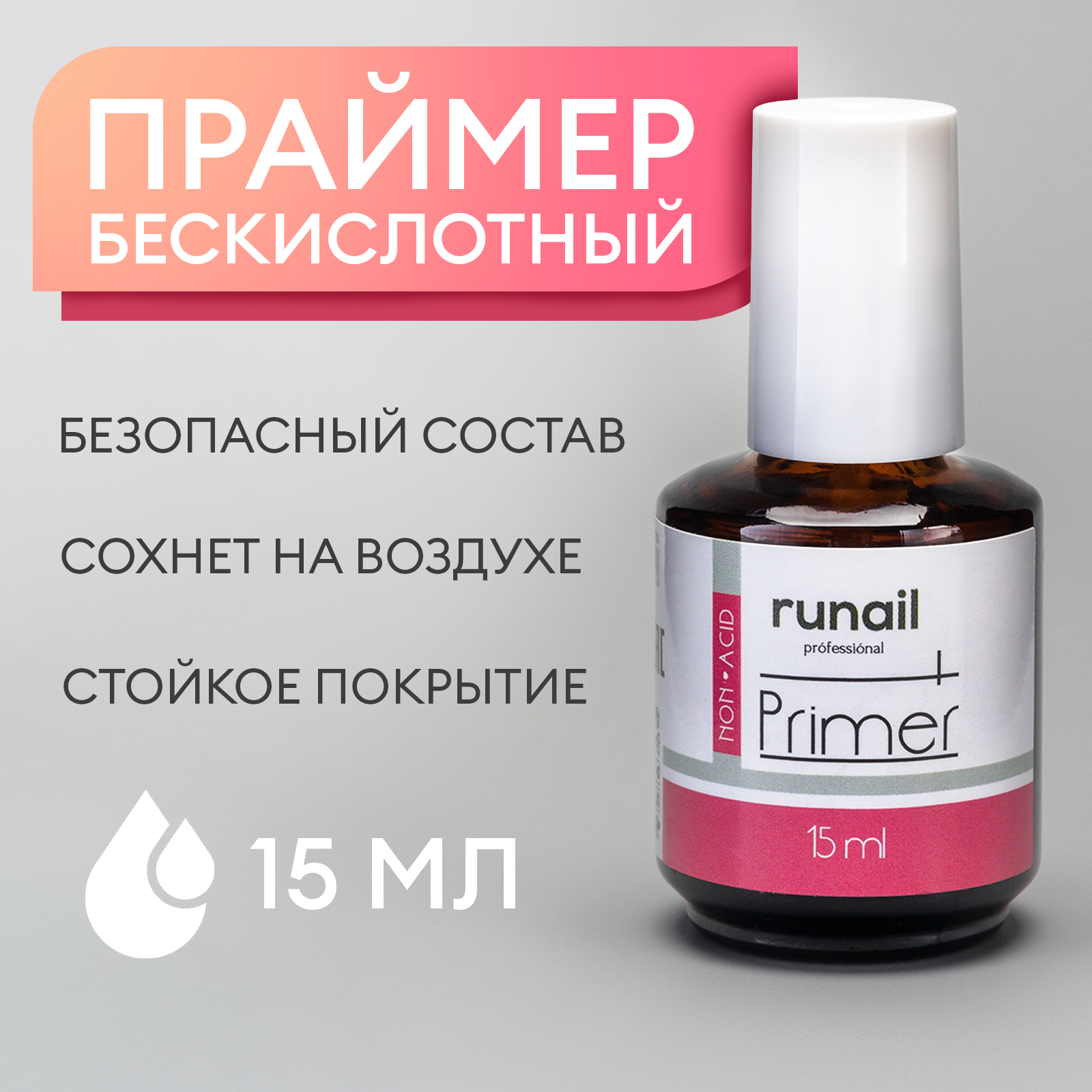 Runail Professional праймер для гель лака кислотный / бескислотный 15 мл / Рунейл праймер для ногтей