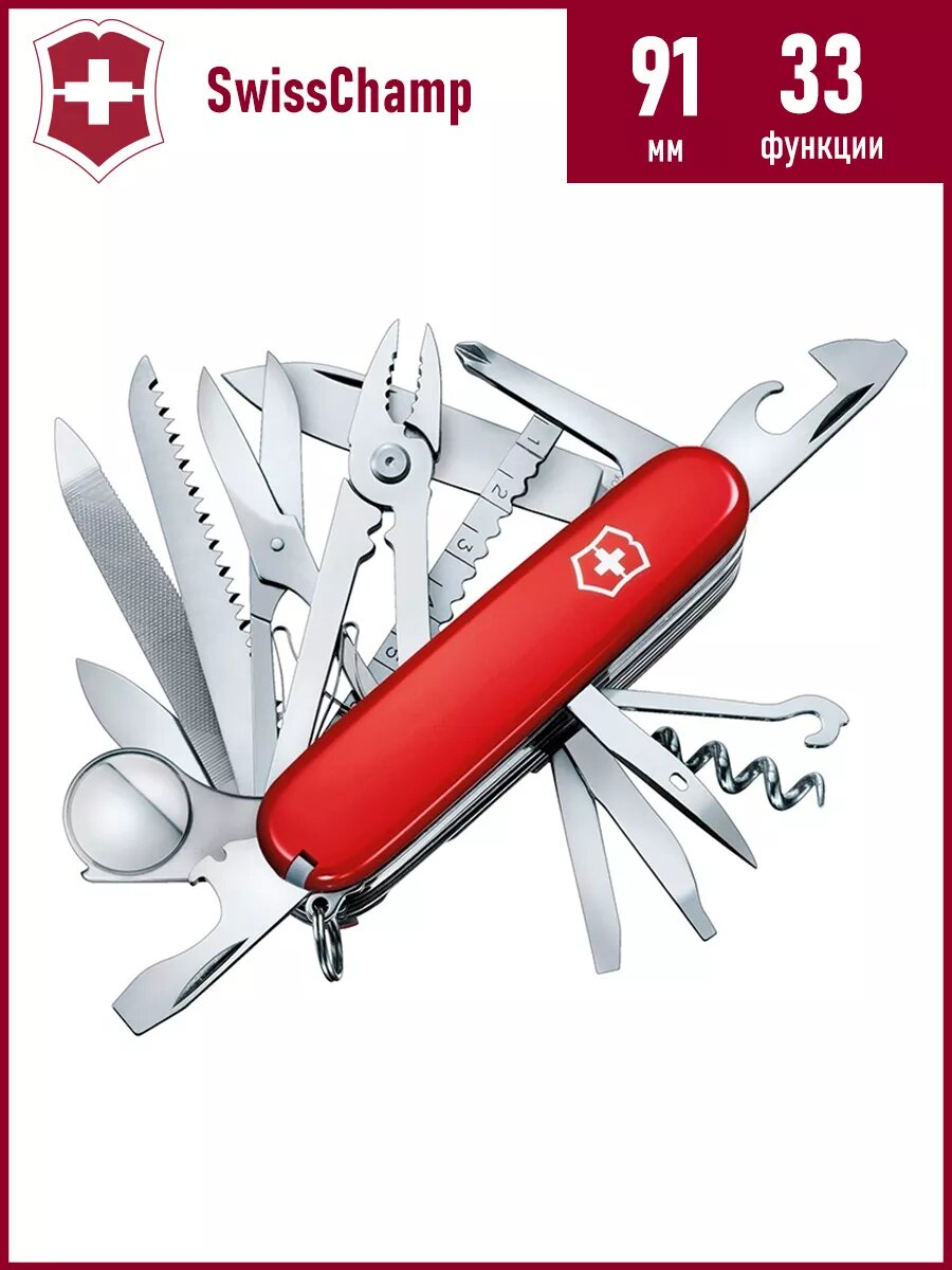 Купить Нож перочинный Victorinox SwissChamp (1.6795.LB1) 91мм 33функций красный блистер