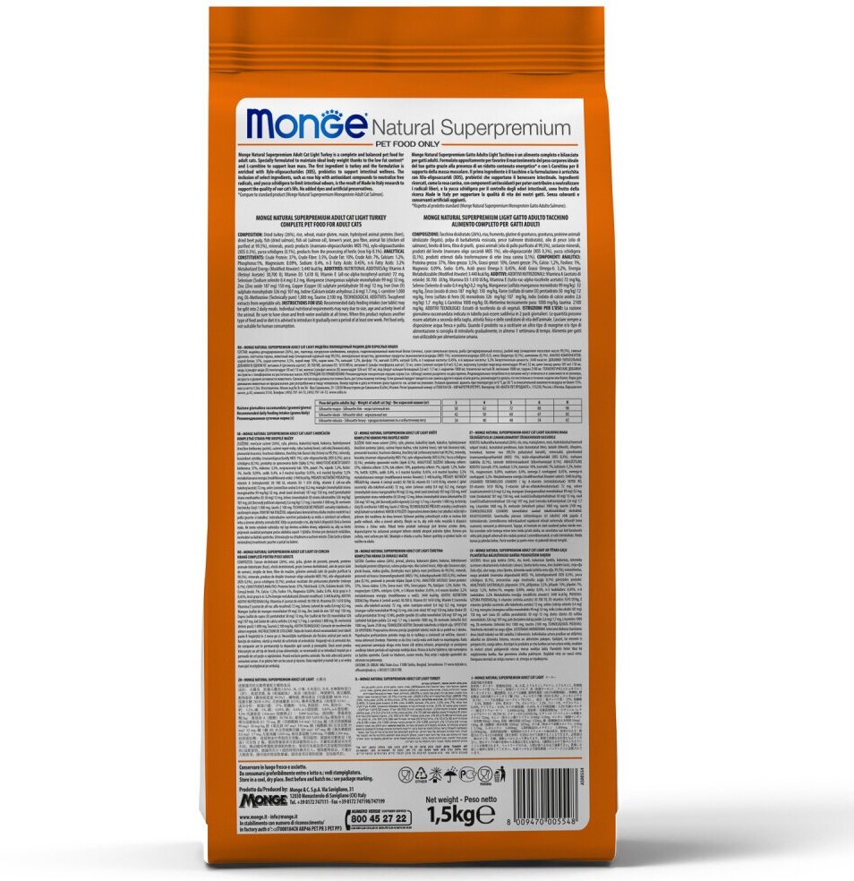 Сухой корм для стерилизованных кошек Monge Natural Superpremium Monoprotein, с уткой 3 шт. х 1.5 кг