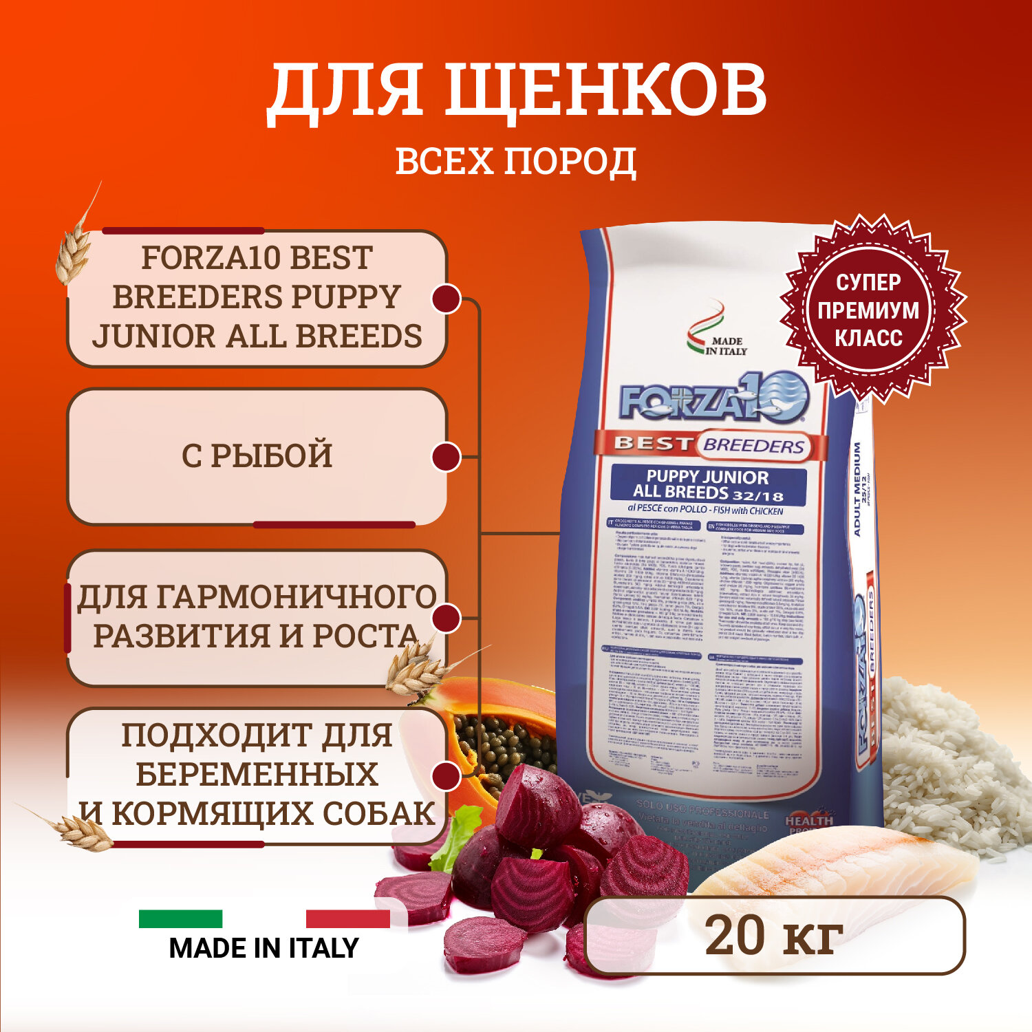 FORZA10 DOG BEST BREEDERS PUPPY JUNIOR ALL BREEDS для щенков всех пород с курицей и рыбой (20 кг)