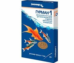 Корм для рыб зоомир "Гурман-1" деликатес 1 мм, коробка, 30 г, 2 шт.