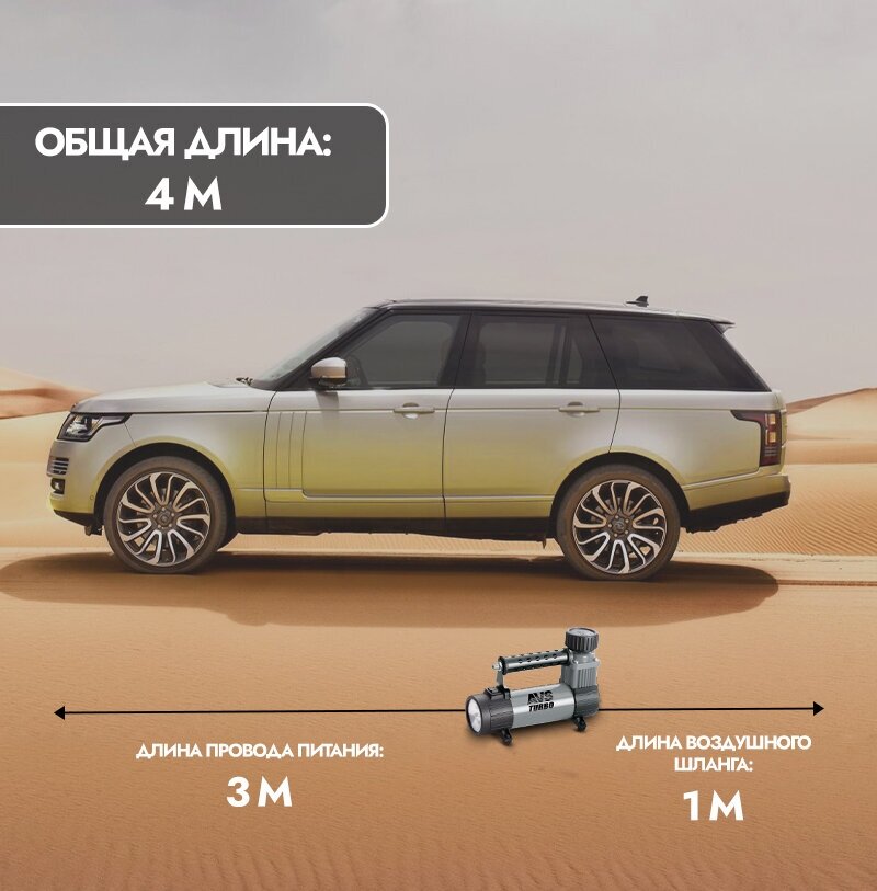 Компактный, легкий, удобный. Есть встроенный фонарик и манометр. Длина провода 3 метра, достаточно чтобы дотянуться до задних колес.