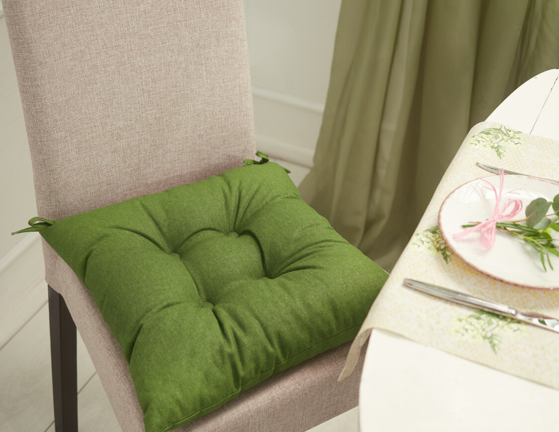 Подушка на стул высокая, Guten Morgen, Рогожка, Цвет: Зеленый 40х40 см