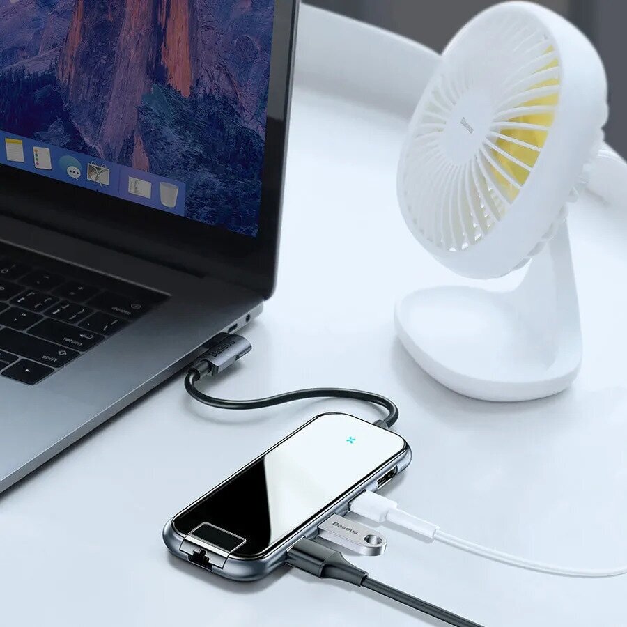 СохранитьUSB концентратор Baseus Multi-functional Type-C to 3xUSB3.0+HDMI+RJ45+PD CAHUB-DZ0G Deep Gray интересное: