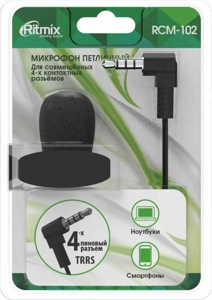 Микрофон Ritmix RCM-102 на клипсе, 4 pin , чёрный