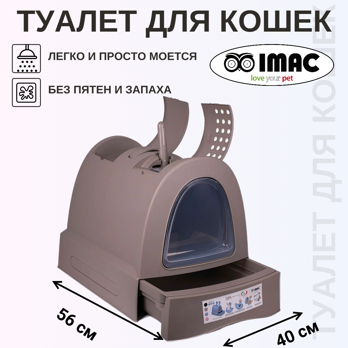 IMAC туалет для кошек закрытый ZUMA, 40х56х42.5см, бежево-серый