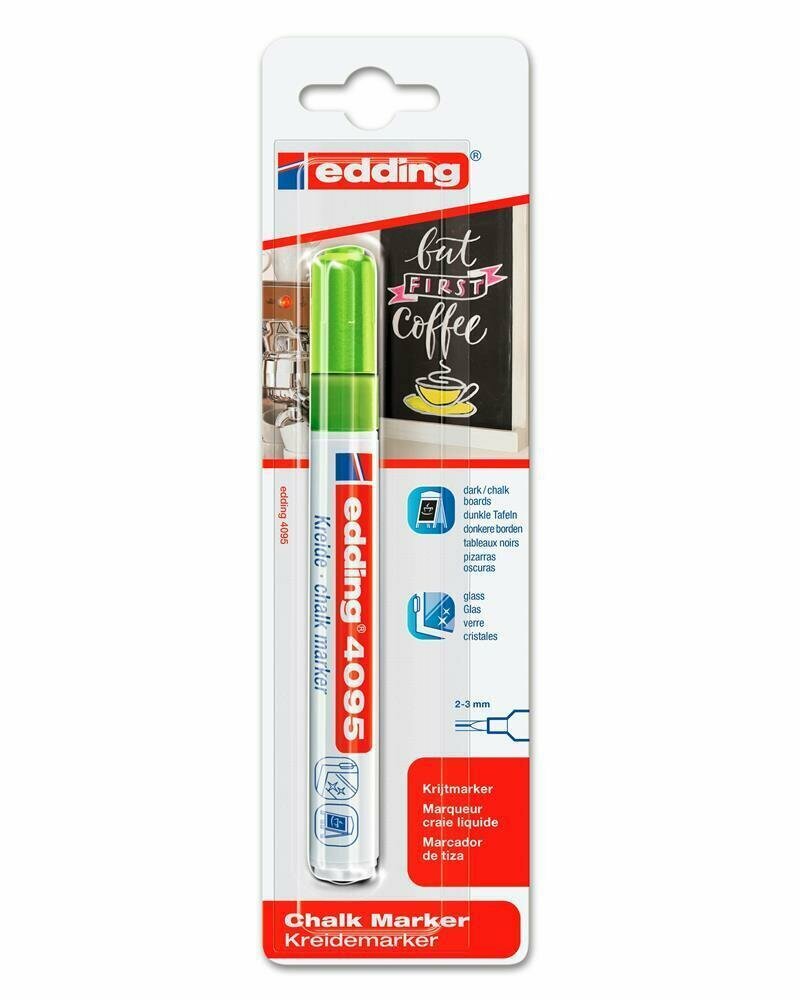 Маркер меловой EDDING 4095, 2-3 мм, зеленый, влагостираемый, для гладких поверхностей, E-4095/4 В комплекте: 1шт.