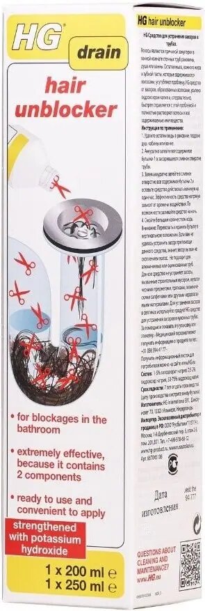 Ниже Вы можете прочитать отзывы на HG Hair Unblocker Средство для устранения засоров в трубах 2-ух компонентное 200+250 мл, ознакомится с подробными характеристиками, посмотреть интересные обзоры и фотографии на HG Hair Unblocker Средство для устранения засоров в трубах 2-ух компонентное 200+250 мл.