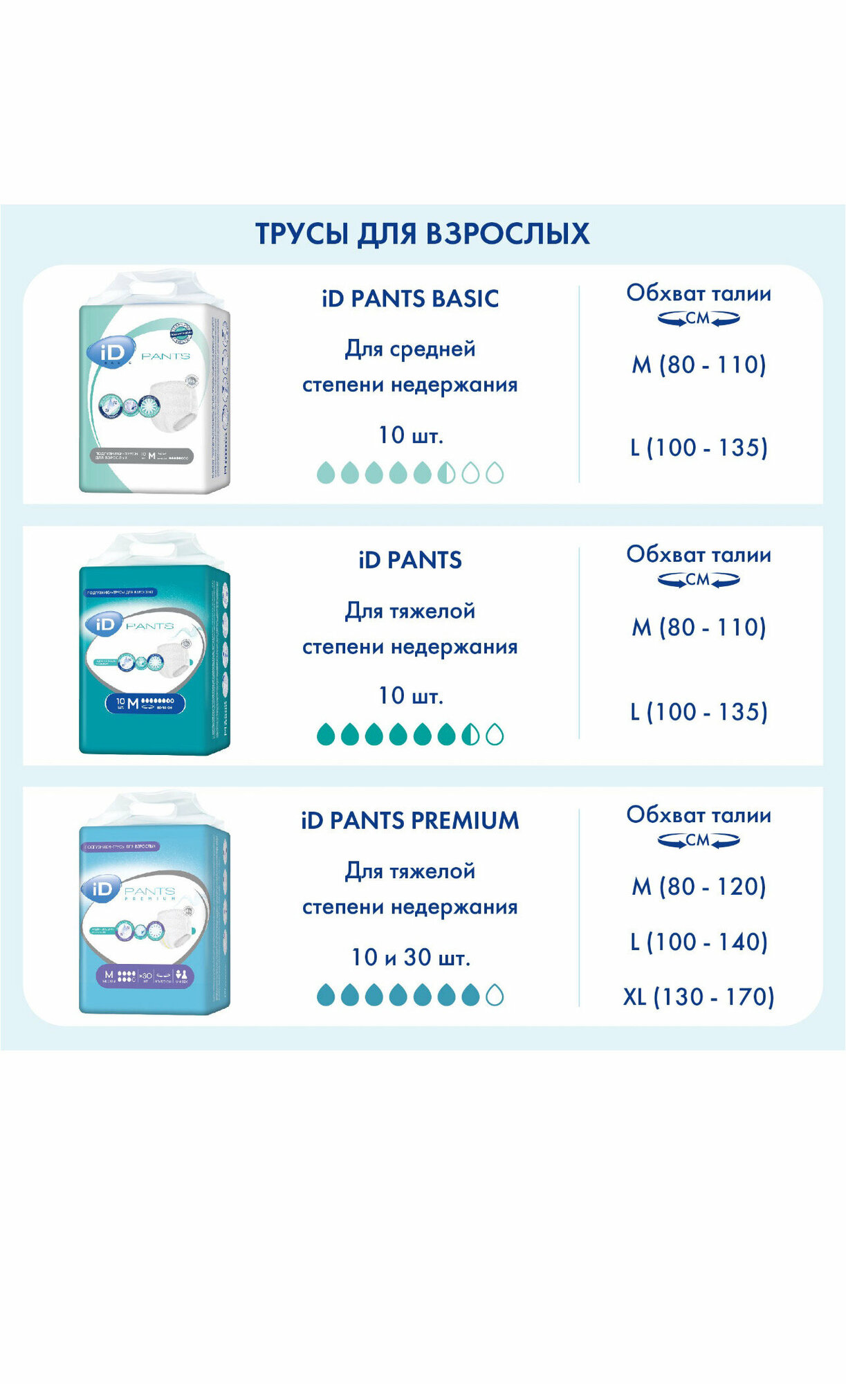 Подгузники-трусики для взрослых iD Pants размер M, 10 шт .